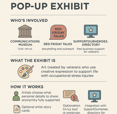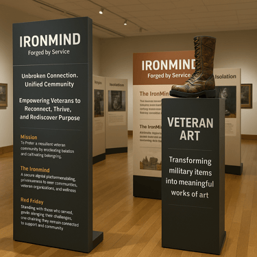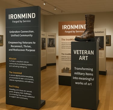 IronMind is a national initiative developed by RED Friday Talks with the Military Communications & Electronics Museum (Kingston). It pairs veteran-made art with a secure digital platform designed to strengthen connection, belonging, and purpose among those who served.