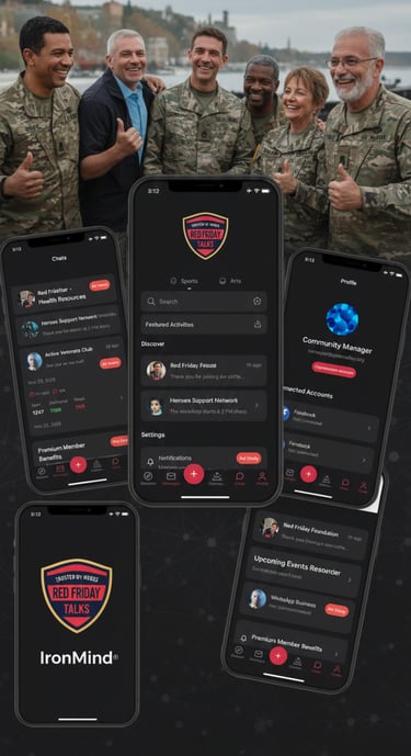 After service, many veterans face isolation, reduced community connection, and difficulty navigating fragmented non-emergency supports. IronMind provides a scalable, secure, veteran-centric bridge—linking peers, organizations, and opportunities directly through familiar digital tools.